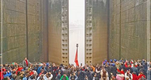 2、车去船回,过葛洲坝船闸体验水降船落。